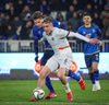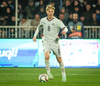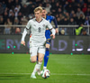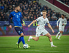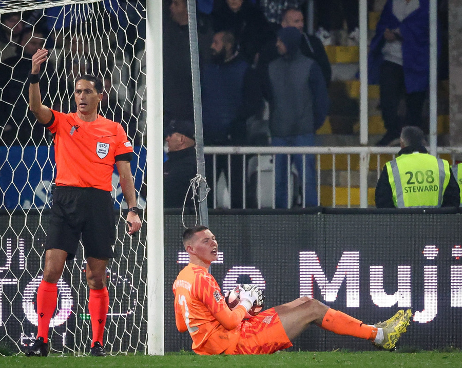 Kosovó fær hornspyrnu sem er lyft á teiginn og fyirrliði Kosovó nær skalla en Hákon með allt á hreinu.