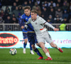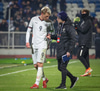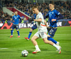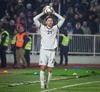 Leart Paqarada lyftir boltanum inn á teiginn og Amir Rrahmani fær boltann sem betur fer í höndina áður en hann setti boltann í netið
