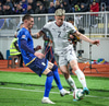 Elvis Rexhbecaj hirðir boltann af Hákoni og setur boltann stöngin og inn.