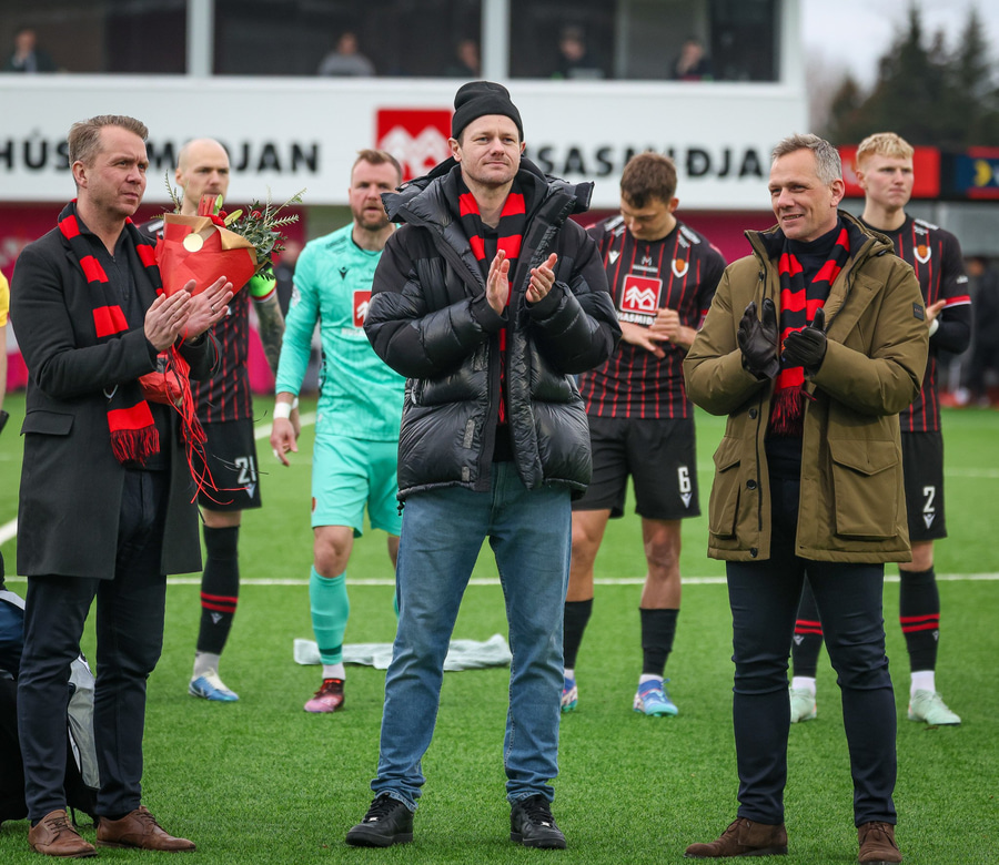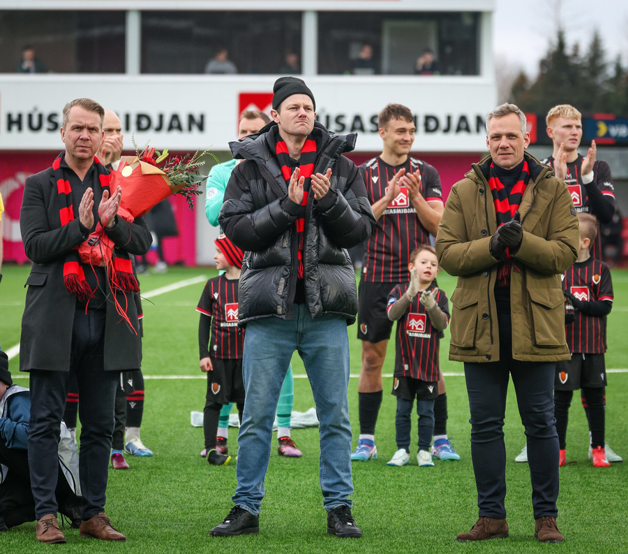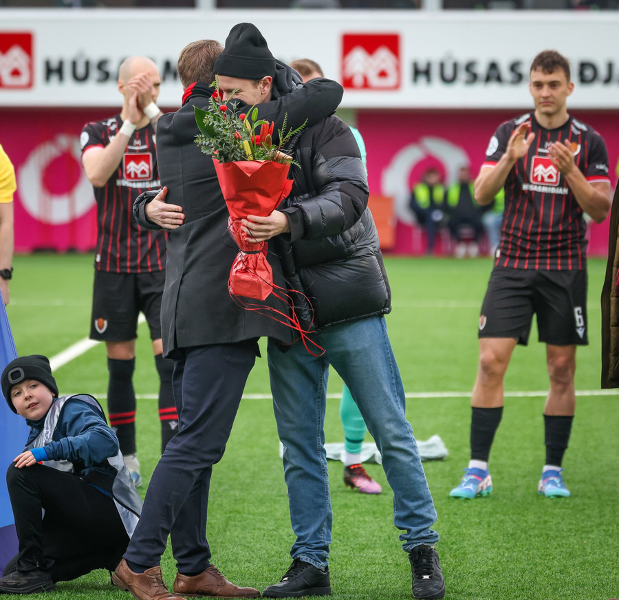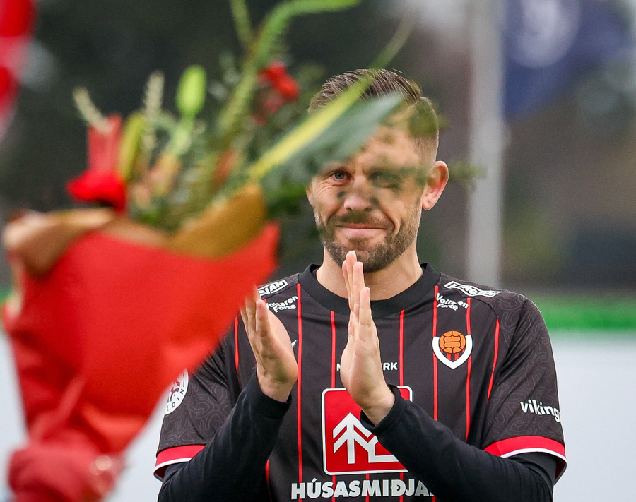 Halldór Smári Sigurðsson eða Herra Víkingur lagði skónna á hilluna frægu á dögunum. Hann er fyrir leik heiðraður af Víkingum með blómvendi og tilheyrandi.