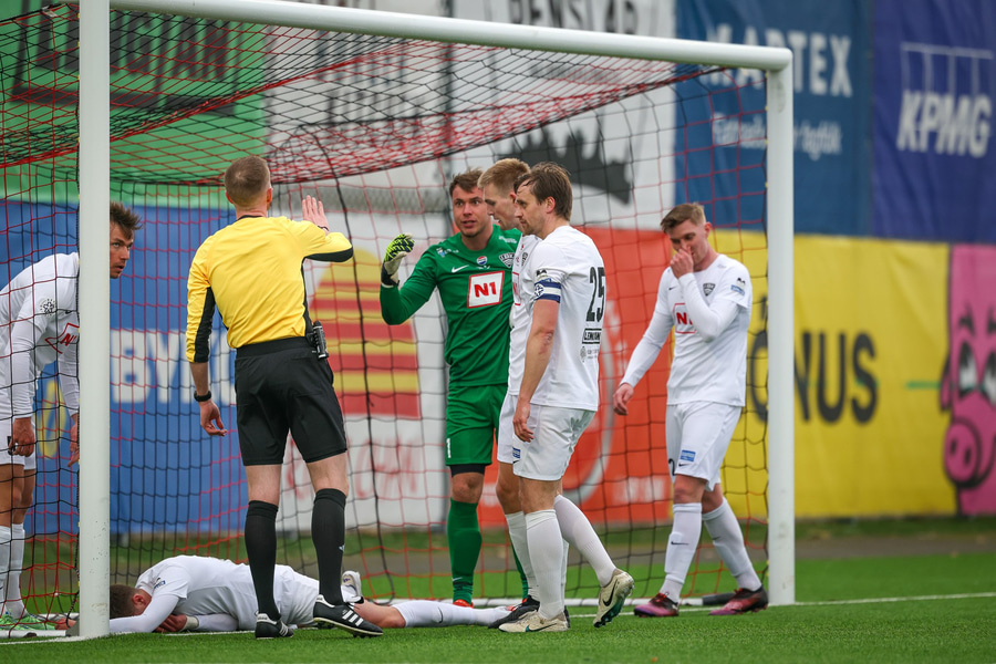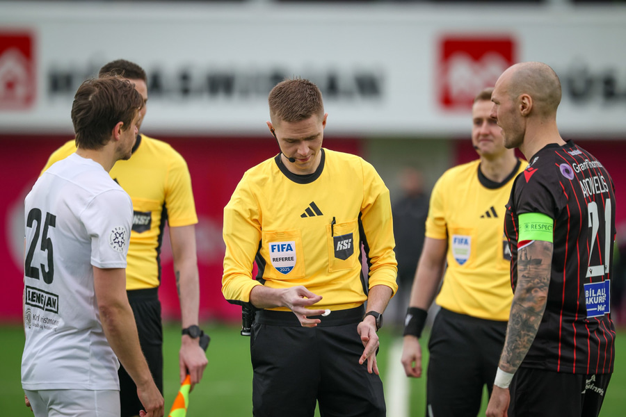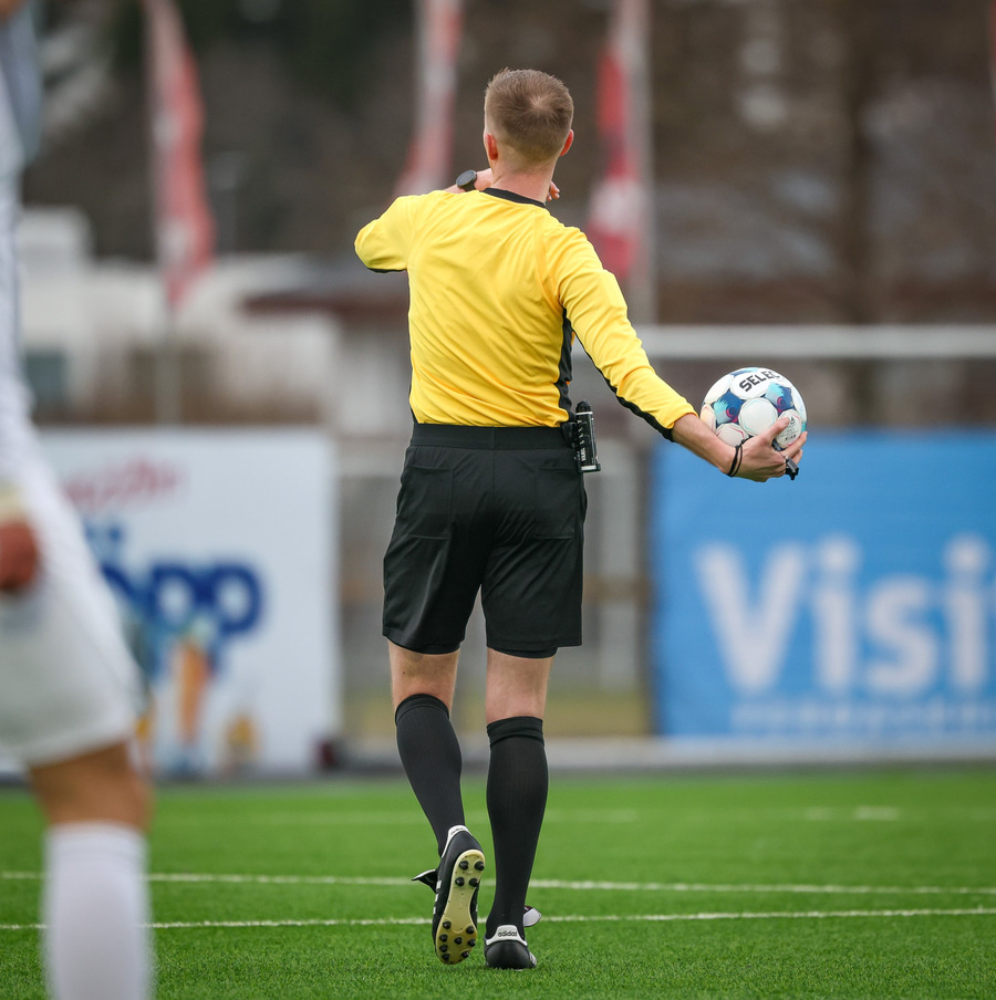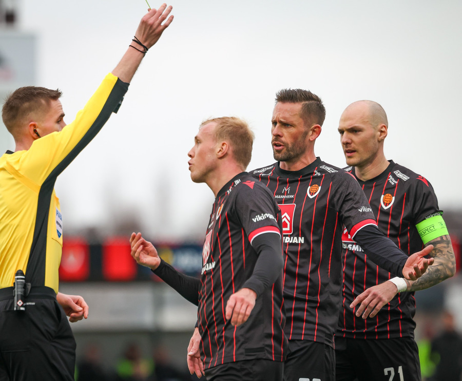 Valdimar snýr á Alex sem sparkar hann niður. Helgi í vasann og rífur upp gula spjaldið.
