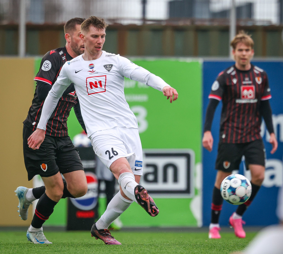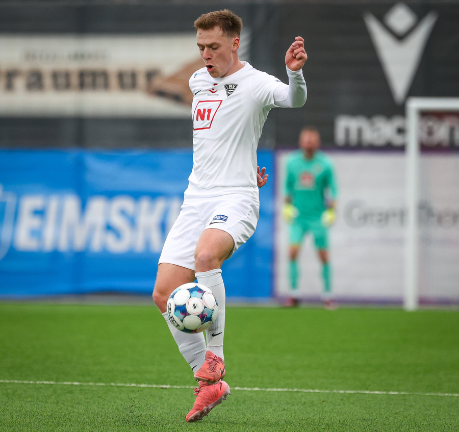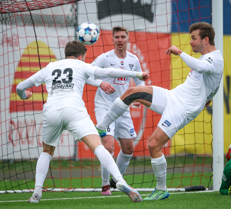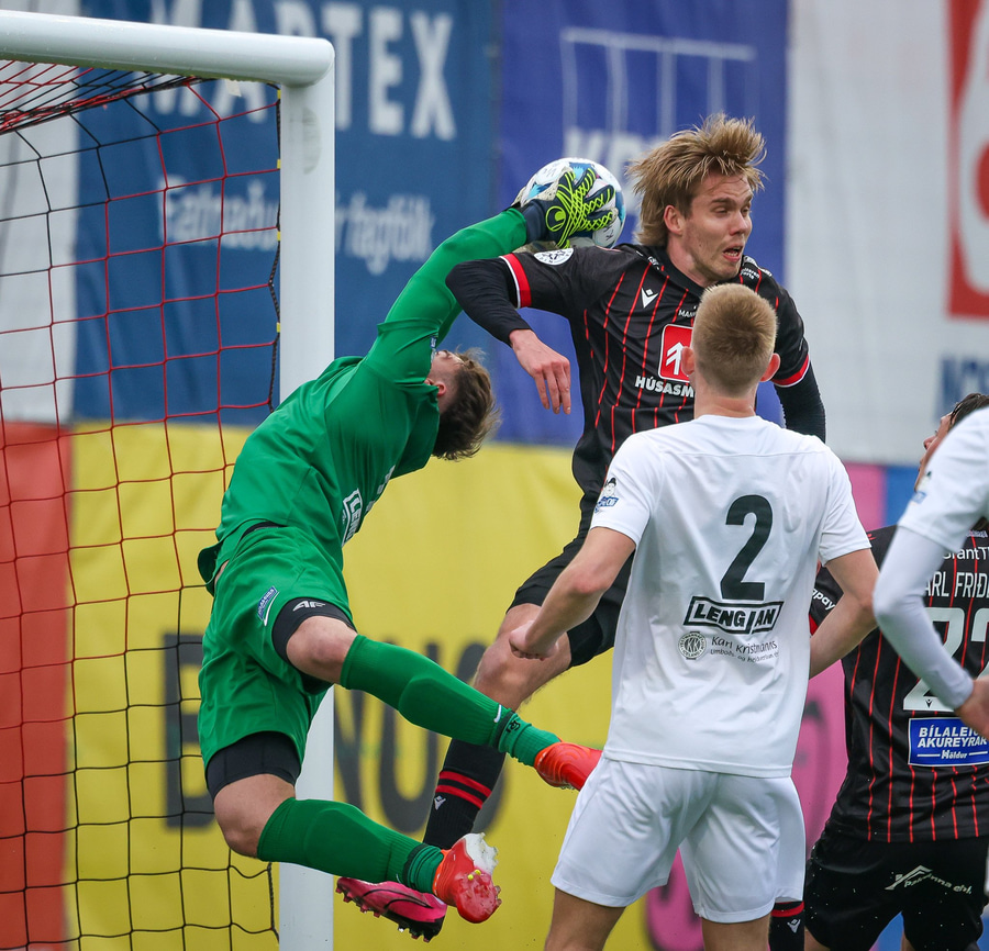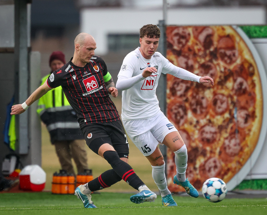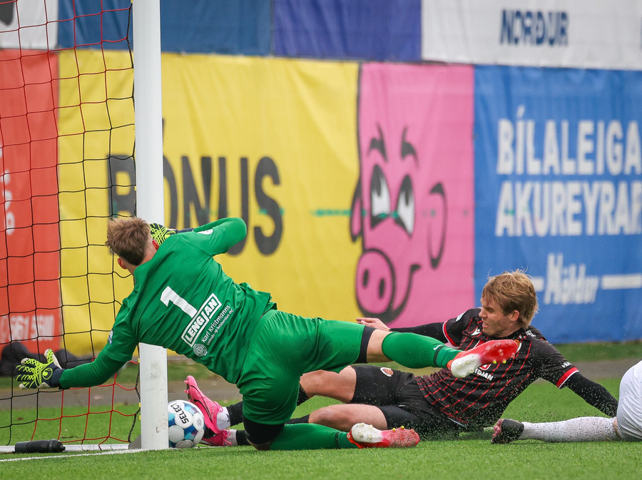 Felix Örn með gott hlaup upp vænginn og hættulega fyrirgjöf. Oliver gerir sig líklegan en Ingvar fyrri til á boltann.