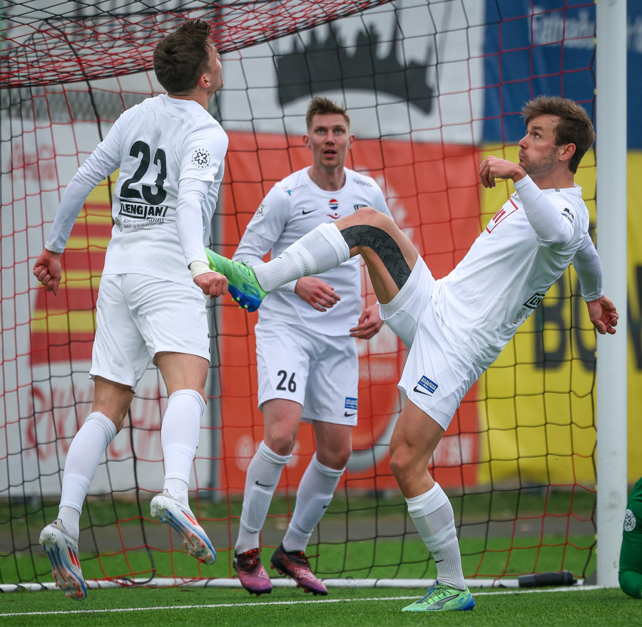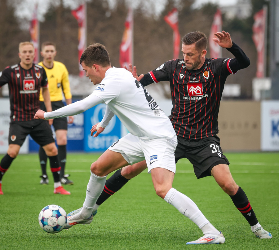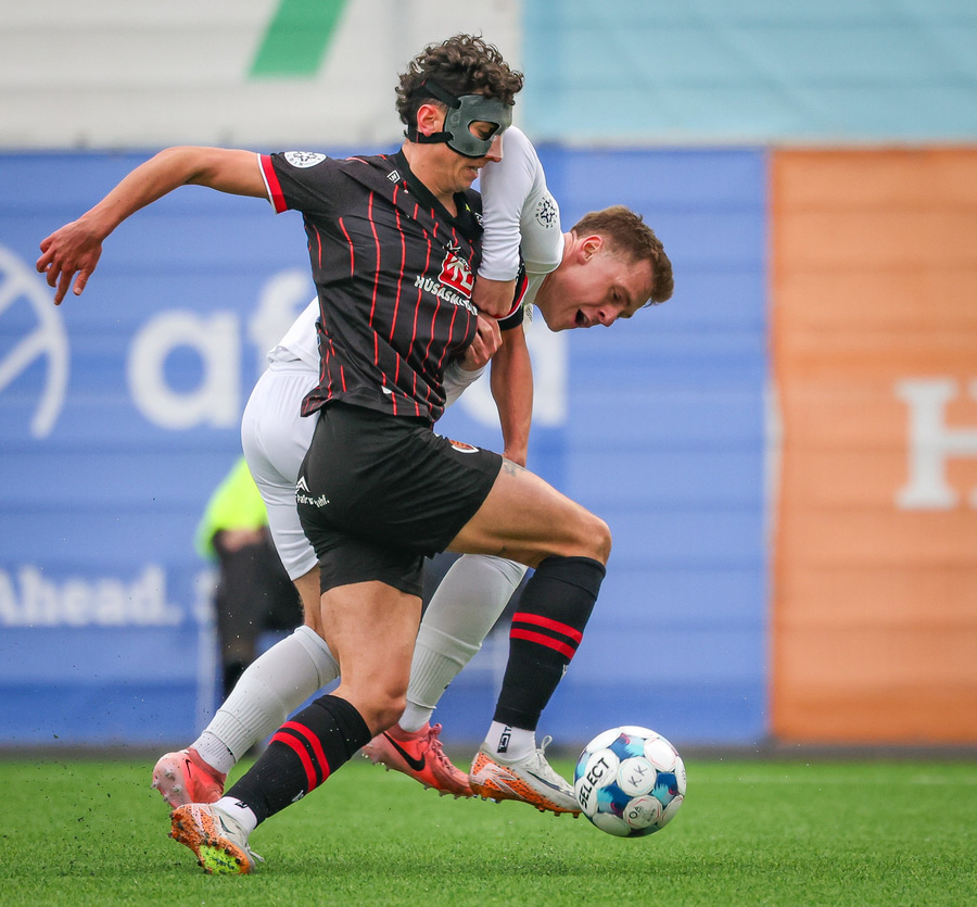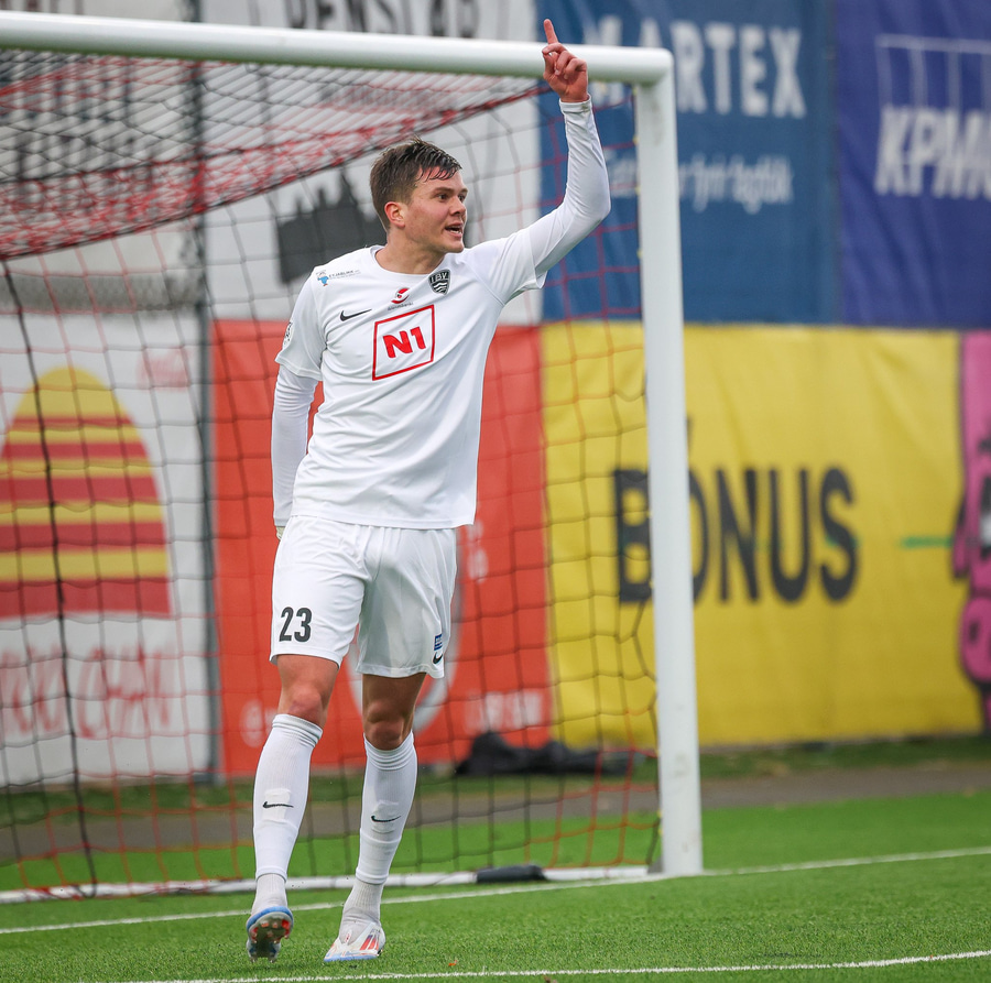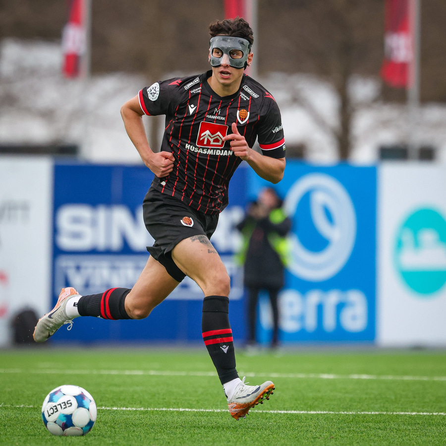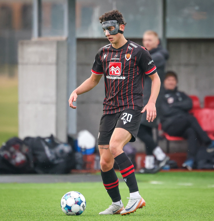 Felix Örn með gott hlaup upp vænginn og hættulega fyrirgjöf. Oliver gerir sig líklegan en Ingvar fyrri til á boltann.