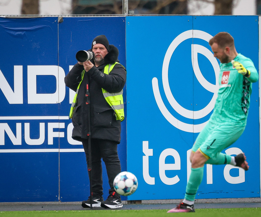 Smellhittir boltann sem virðist stefna beint í hornið vinstra megin á markinu. Marcel vel á verði og ver ekki síður glæsilega.