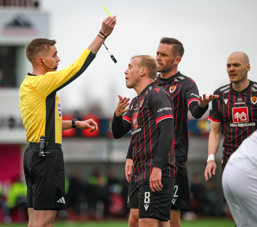 Helgi var fljótur í vasann að rífa upp rauða spjaldið.