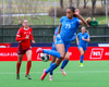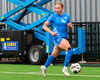 Boltinn fellur fyrir Hlín sem reynir skot sem varnarmenn komast fyrir. Frákastið á Emilíu sem reynir að finna skotfæri en nær ekki að koma boltanum framhjá Hlín sem liggur í grasinu og sóknin rennur út í sandinn.