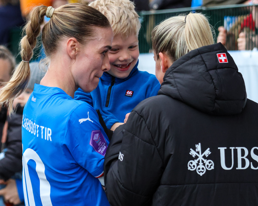 MARK!Skotið vel út í hornð en Elvira Herzog er mætt en það dugar ekki til. Boltinn hreinlega lekur í gegnum hana og í netið. Sú svissneska eflaust svekkt en okkur er alveg sama.