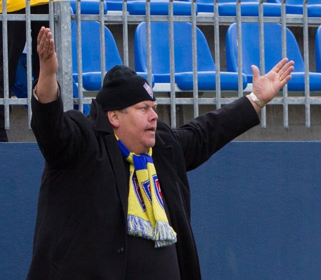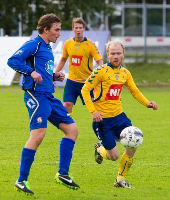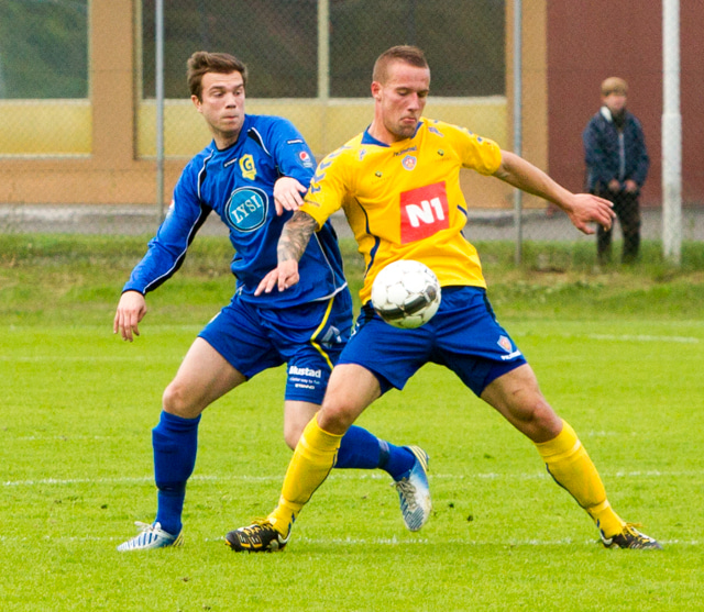Juraj Grizelj núna mættur á vinstri vænginn og fer illa með Darren Lough. Sendingin/skotið hans var þó of innarlega og endaði ofaná tréverkinu og útaf.