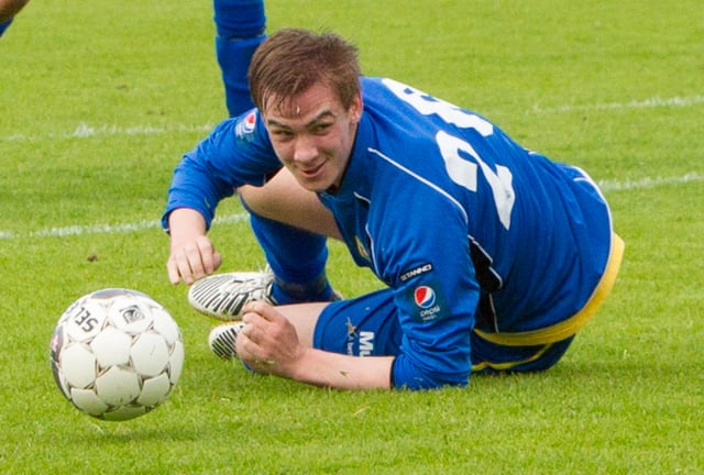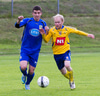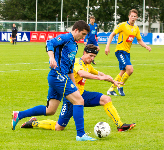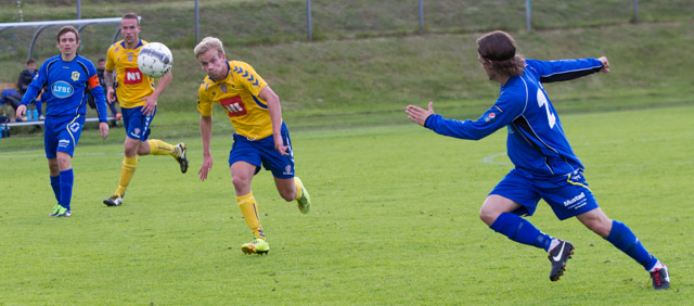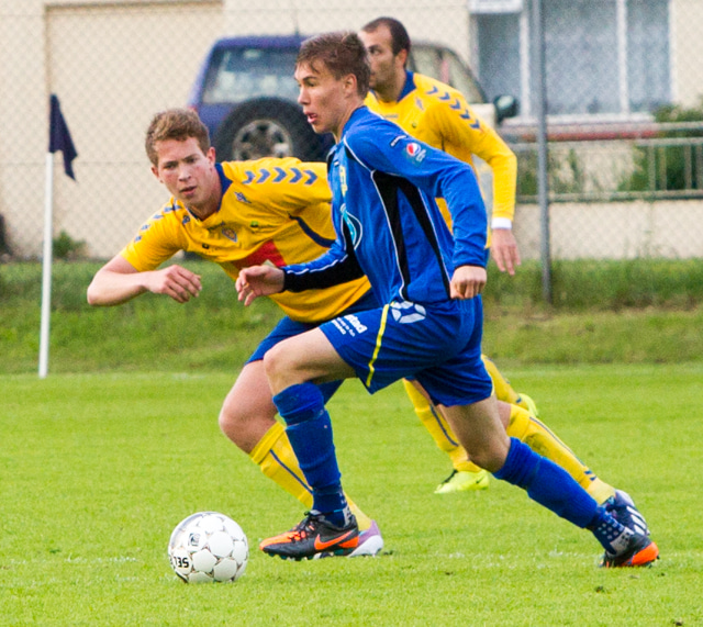 Ævar Ingi sleppur einn í gegn eftir langa sendingu fram frá Ivan Dragicevic. Eftir að hafa leikið á Marko Valdimar Stefánsson nær Ævar skoti á markið en Óskar Pétursson varði vel.