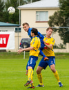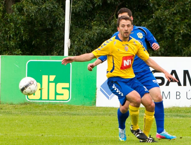Ivan Dragicevic með skalla rétt yfir eftir hornspyrnu, heimamenn verða að fara að bæta sinn leik ef þeir ætla að eiga einhvern séns hér í dag.