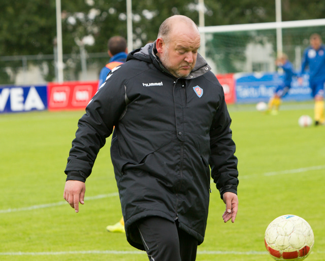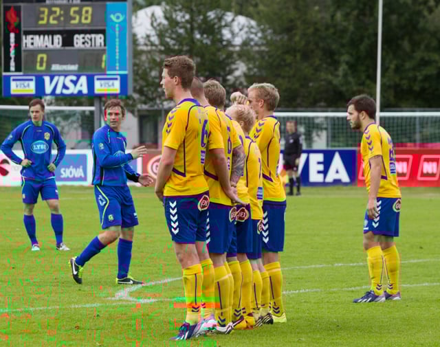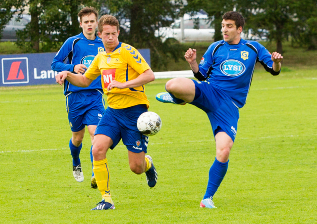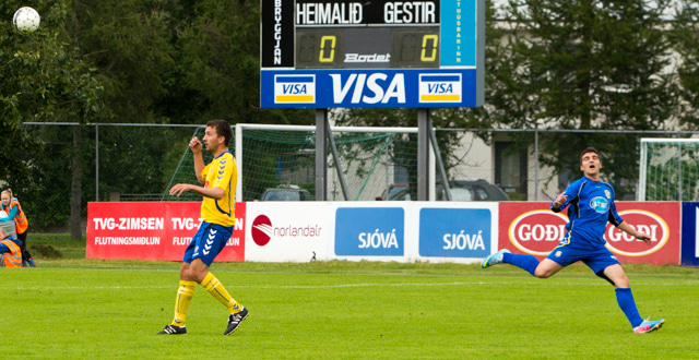 Heimamenn mun líflegri hér í upphafði síðar hálfleiksins. Orri Gústafsson nálægt því að skalla að marki en hann var að berjast um skallaboltann við liðsfélaga sinn Carsten Pedersen, þetta var hálf furðulegt.