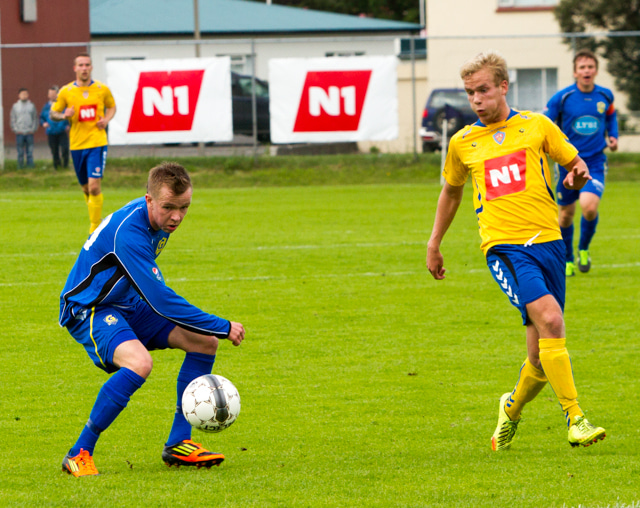 Þvílík slumma! Bjarki Baldvinsson leggur boltann út á hægri vænginn þar sem Ómar Friðriksson kemur á sprettinum og smellir boltanum beint í samskeytin fjær, alvöru!