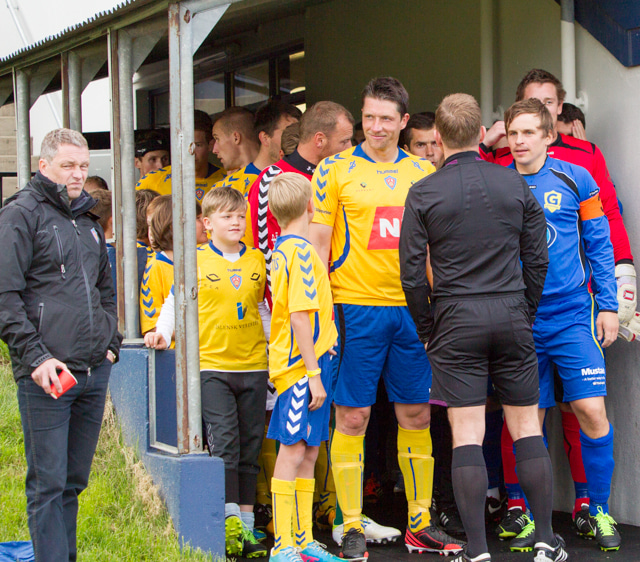 Eitt er alveg á hreinu og það er að vallarþulurinn hér á Akureyrarvelli er í stuði í dag, þessi upplestur á nöfnum var keppnis.