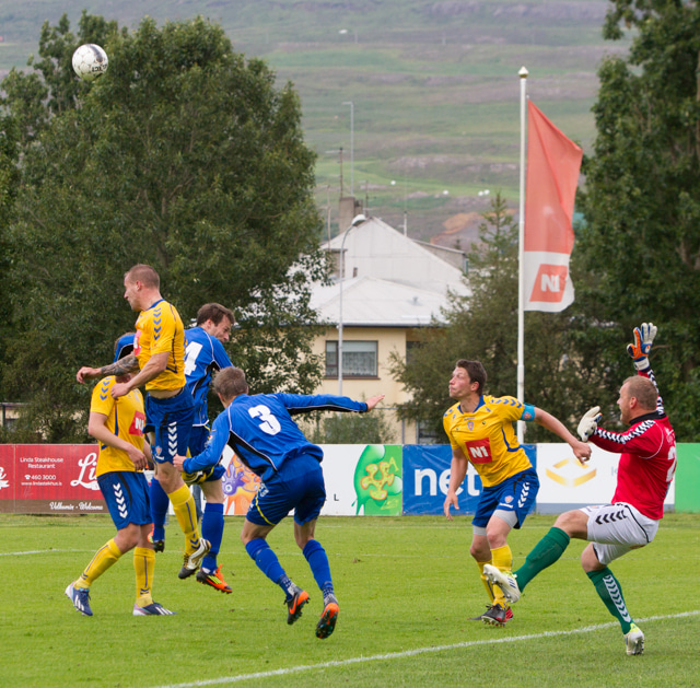 Óli Baldur Bjarnason nær skalla að marki eftir horn en Sandor enn og aftur með laglega vörslu.