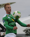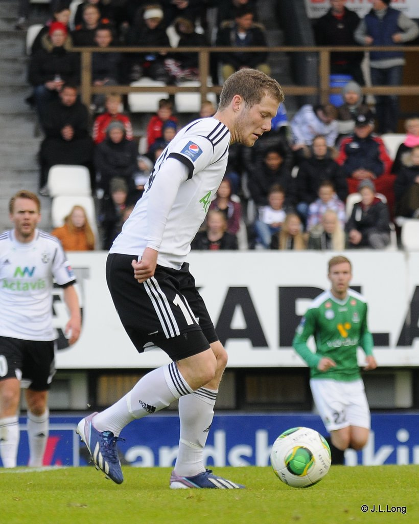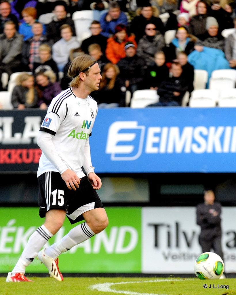 Björn Daníel með gott drive upp miðjuna. Sættir sig á endanum við skot úr jaðar teigsins með hægri fæti sem aldrei náði flugi og sigldi framhjá.