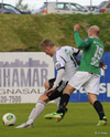 Ingimundur Níels hendir í skæri og finnur Atla Guðna með hárfínni fyrirgjöf. Skalli Atla spýtist af grasinu og virtist Gunnleifur misreikna þetta/vanmeta og var heppinn að koma hanskanum fyrir boltann.