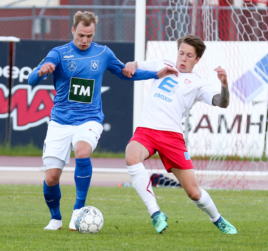 Ég er ekki að ruglast á köntum eins og kunnuga gæti grunað. Sveinn Elías og Þorsteinn Már, sem vanalega eru hægra megin í sínum liðum byrja báðir á vinstri kanti.