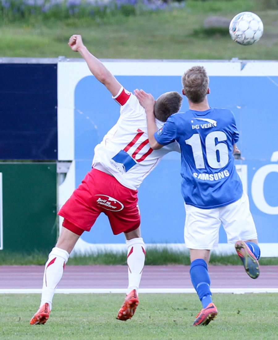 Þórarinn Ingi með flotta fyrirgjöf sem Aron Kristófer hreinsar vel í innkast af fjærstönginni. Kemur ekkert úr því.