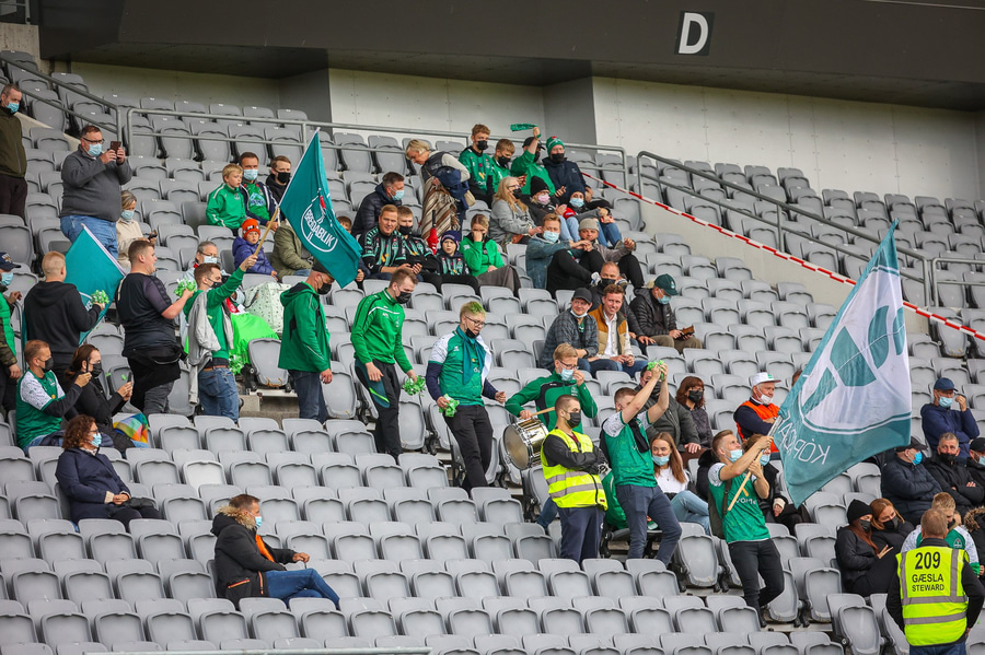,,Það breytir hins vegar andrúmsloftinu á vellinum. Þú vilt spila heimaleiki á heimavellinum þínum. Það er hætt við því að þeir örfáu áhorfendur sem fá að mæta á völlinn týnist á jafnstórum velli og Laugardalsvöllur er. Ég geri ráð fyrir því að það verði erfiðara fyrir okkar stuðningsmenn að ná upp rífandi stemningu."