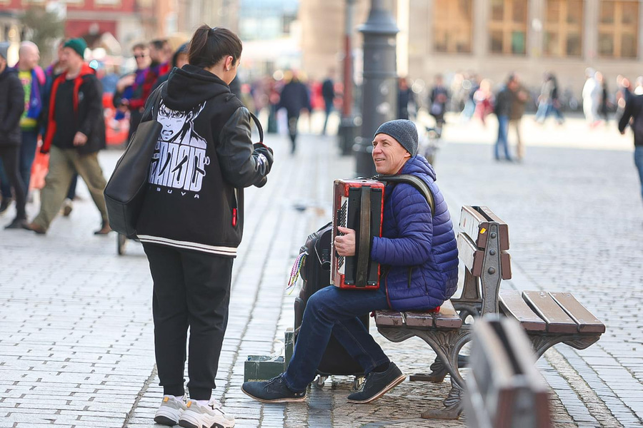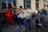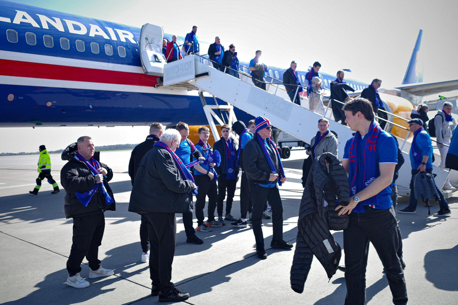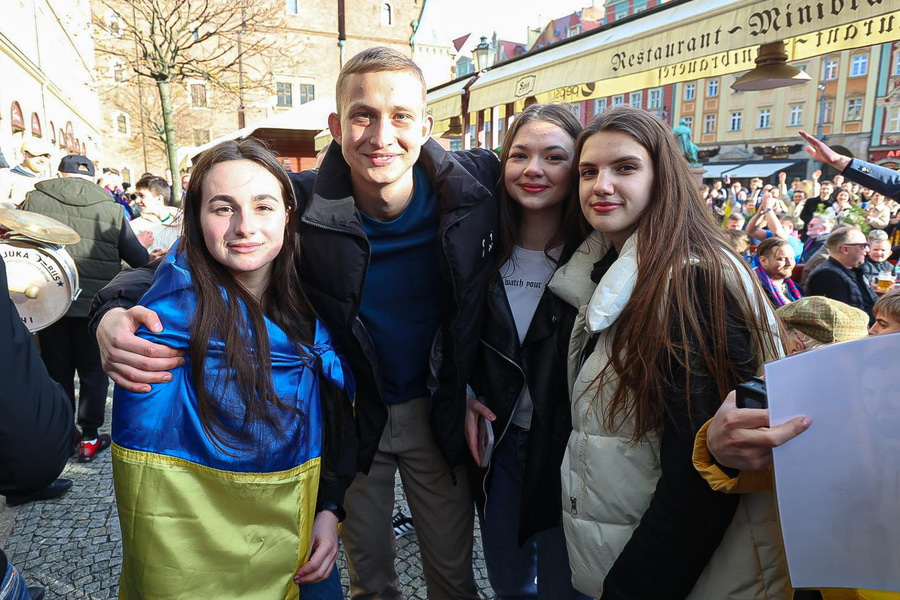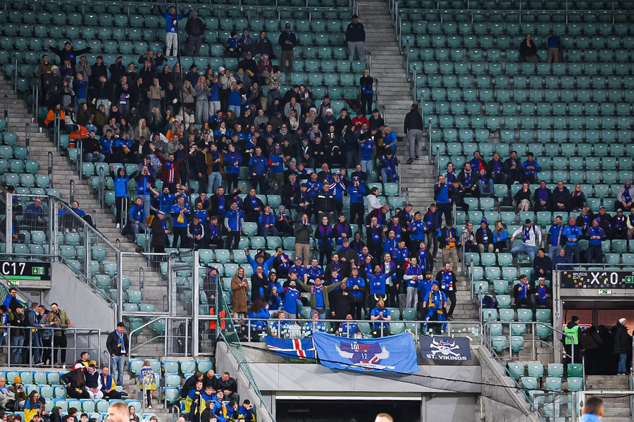 Það var góð stemning hjá stuðningsmönnum beggja liða í upphitun fyrir leikinn og menn sameinuðust í stemningunni í miðborg Wroclaw.