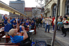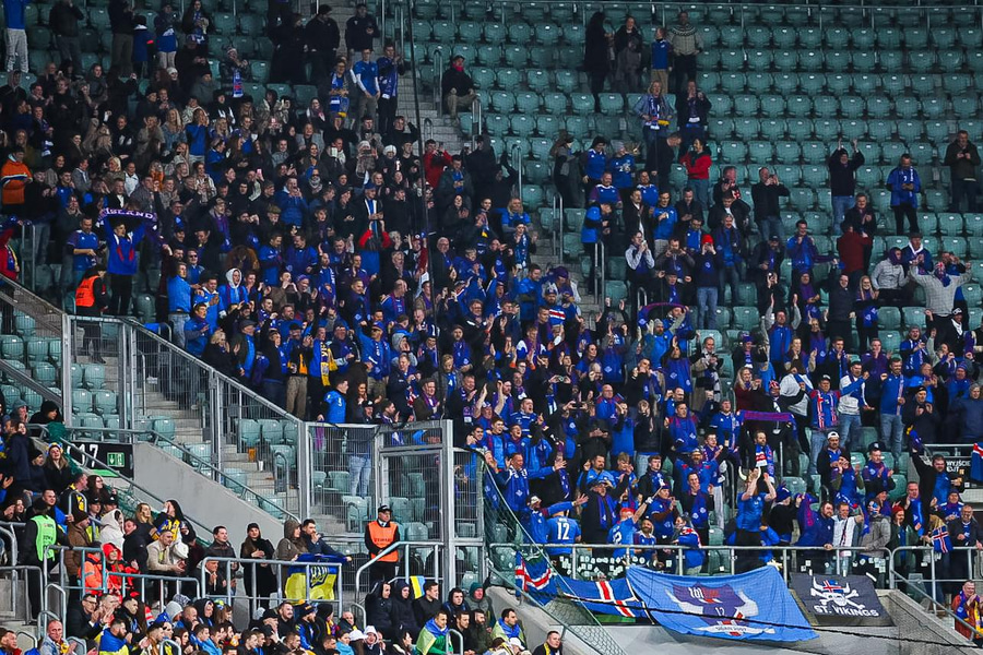 'Ísland á EM' heyrist sungið frá horninu þar sem íslensku stuðningsmennirnir eru saman