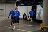 Albert Guðmundsson faðmaði Ruslan Malinovskyi, liðsfélaga sinn hjá Genoa, þegar liðin fóru út á völl áðan.