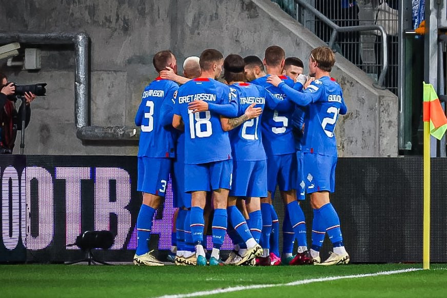 Það er stemning á vellinum. Ísland hóf leik. Hákon Arnar með upphafsspyrnu leiksins.