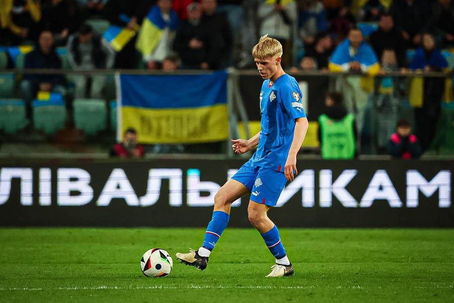 Þvílík læti þegar Úkraína nær að koma sér í fyrstu sókn leiksins, Mudryk nær að komast inn í teiginn og á sendingu en Daníel Leó nær að pikka boltanum í burtu og svo kom hreinsun.