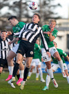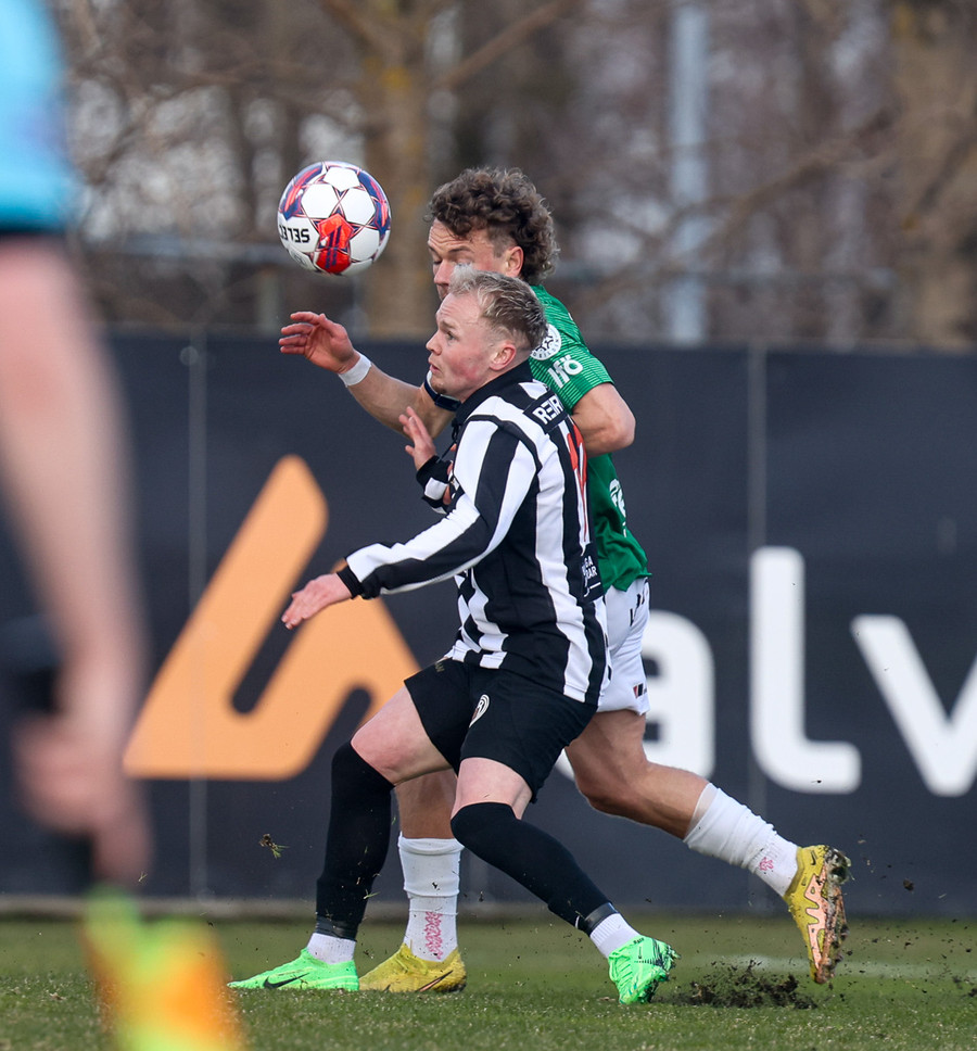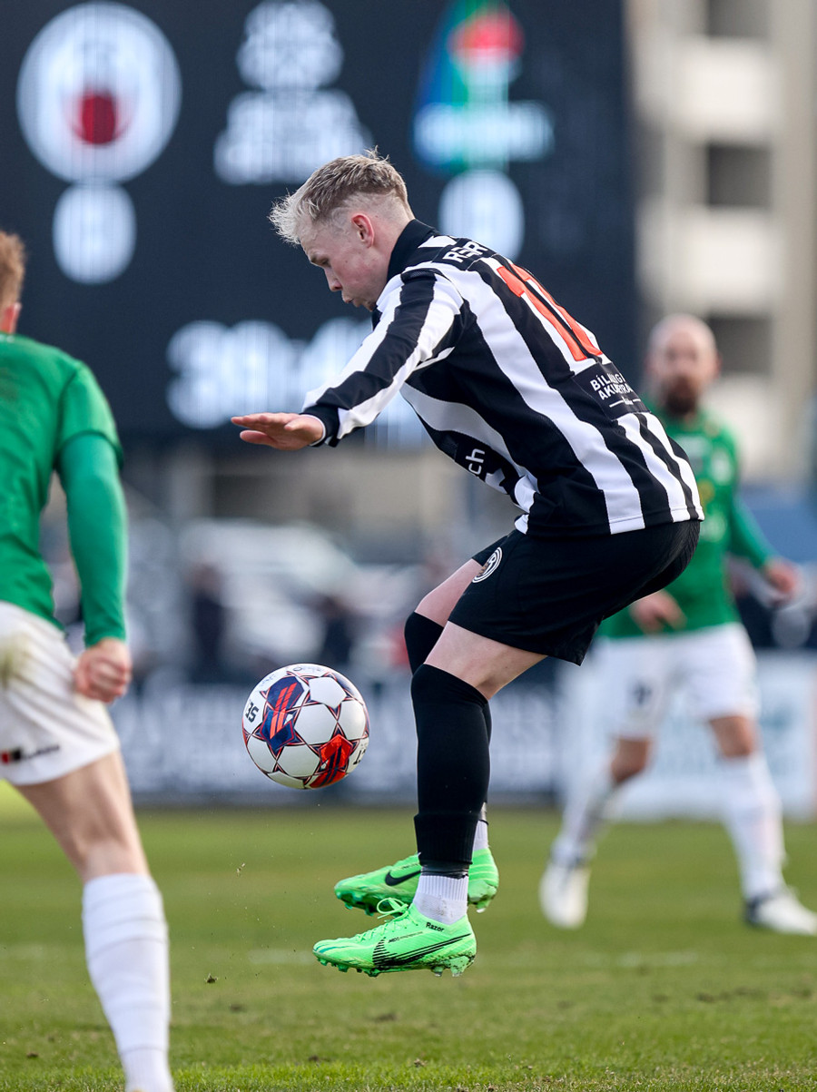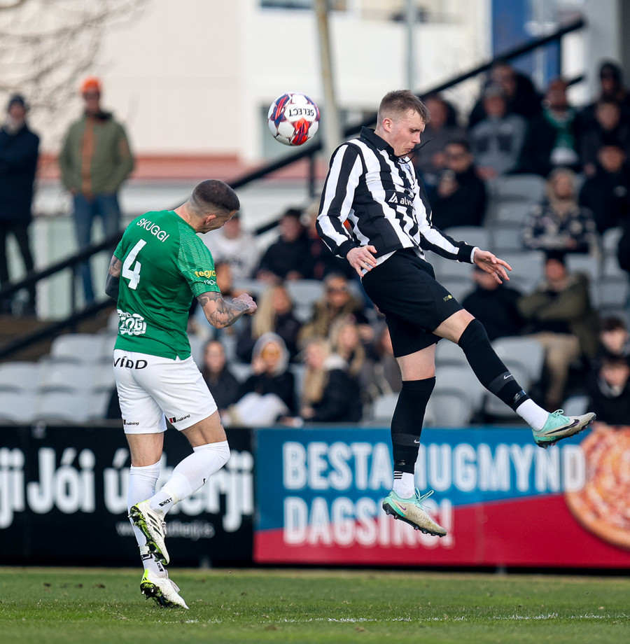 Benjamin Stokke fyrstur á lausan bolta í teignum og lyftir boltanum inn á markteiginn þar sem Jason sneiðir boltann með höfðinu en skallinn fer rétt yfir markið.