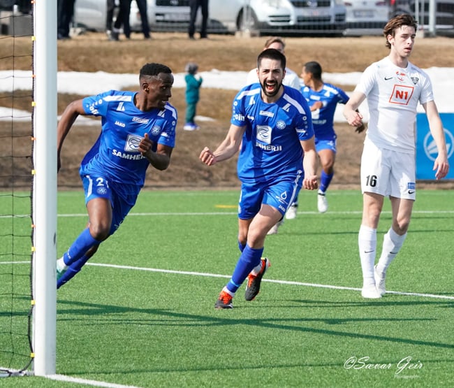 Abdeen Abdul skoraði bæði mörk heimamanna í fyrri hálfleik. Abdul er 29 ára gamall írskur sóknarmaður og hefur spilað víðsvegar um heiminn. Hann lék síðast með Penang í Malasíu. Þar á undan spilaði hann með KF Skënderbeu í Albaníu þar sem hann skoraði 14 mörk í 36 leikjum.