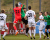 Hoppar af miklum krafti á Sindra Kristinn eftir að Sindri grípur boltann.