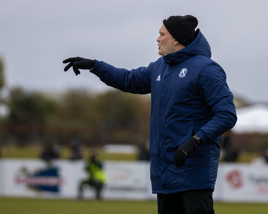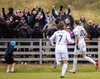 Stefán skorar úr spyrnunni frá vinstra markteigshorni.