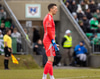 Njarðvík með innkast sem Keflvíkingar komast inní. Boltinn á teiginn á Marin sem tekur boltann á lofti og neglir boltanum í skeytin óverjandi fyrir Aron.