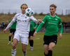 Freysteinn keyrir inn á reig Keflavíkur. Viktor Elmar hleypur hann niður en ÞÞÞ veifar leik áfram.