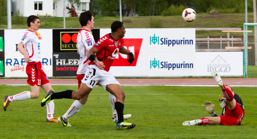 Ármann Pétur í mjög góðu færi. Fékk boltann á lofti við vítateigslínu en setti hann framhjá markinu.