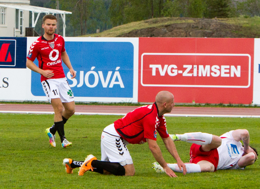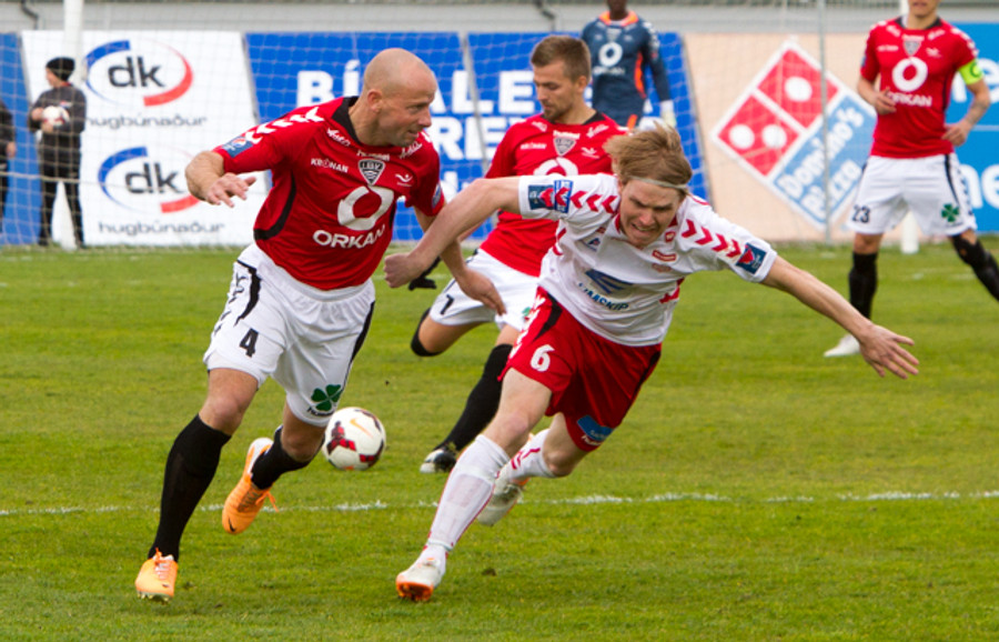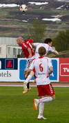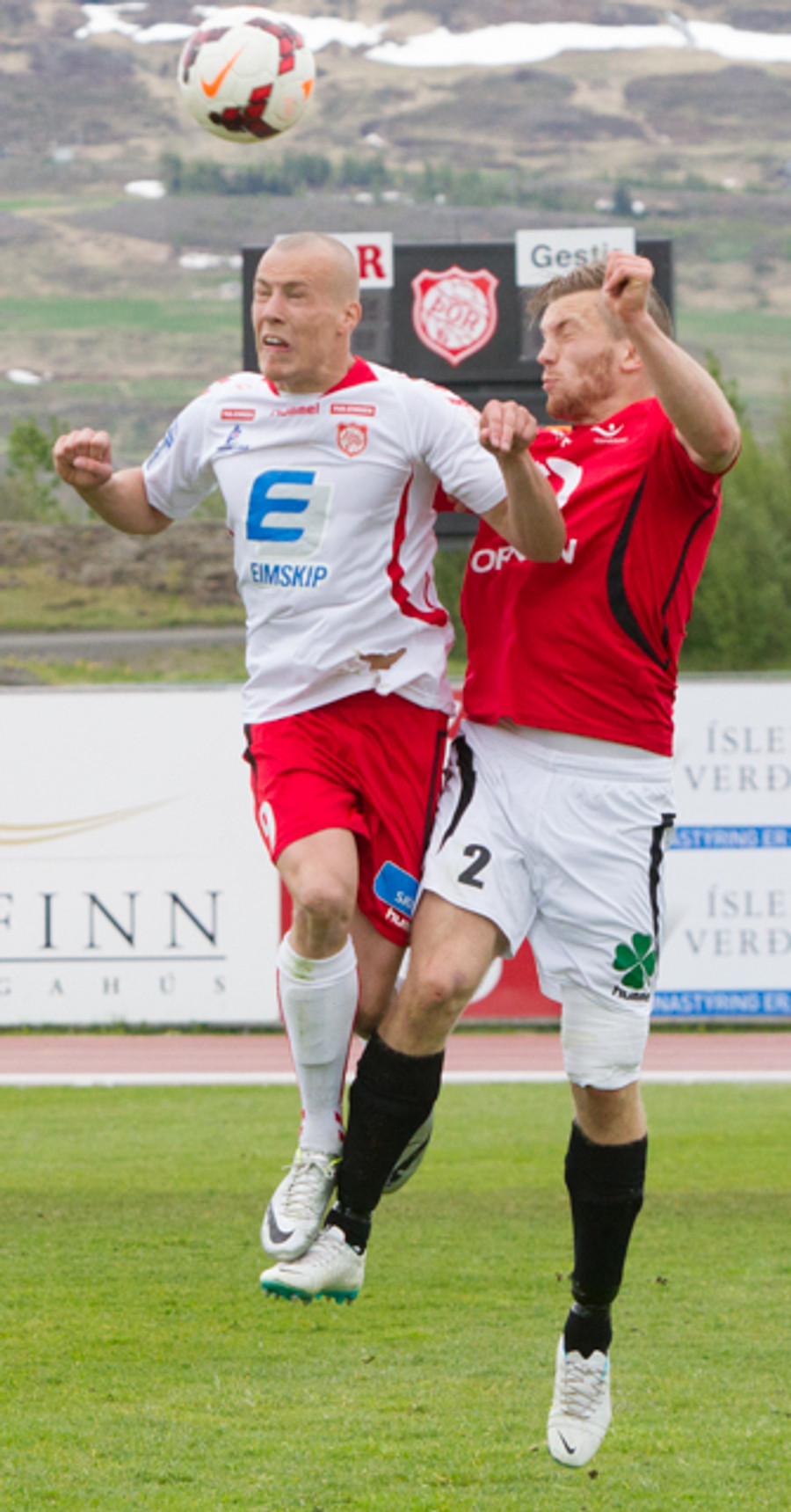 Þórsarar tæpir. Ármann Pétur ætlaði að skalla boltann til baka á Sandor Matus en Jonathan Glenn komst á milli og stal boltanum. Sandor náði þó að hirða boltann af honum til baka.