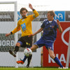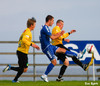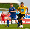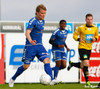 Gary Martin fær að líta rauða spjaldið fyrir ljóta tveggja fóta tæklingu á Nicholas Deverdics. Kristinn Jakobsson dómari var ekki í neinum vafa. Deverdics haltrar af velli með aðstoð sjúkraþjálfara.
