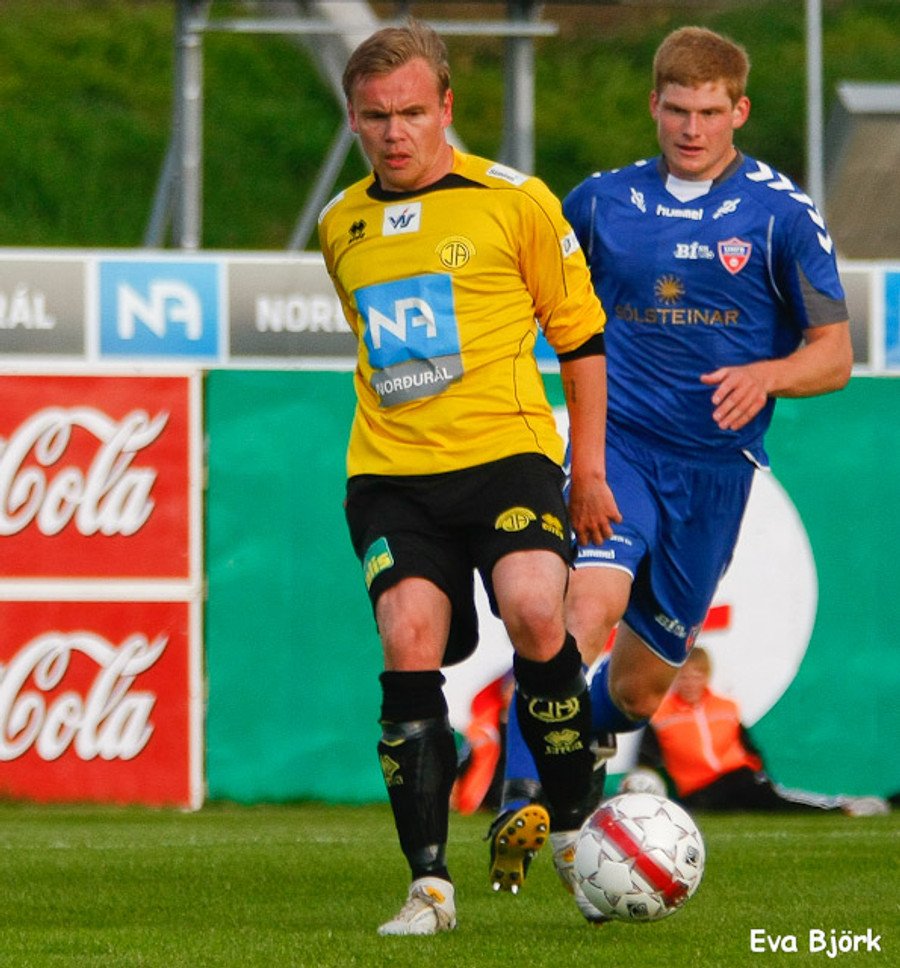 Sigþór Snorrason var að koma inná og er strax kominn með áminningu fyrir brot úti á miðjum velli. Þetta kalla menn að láta finna fyrir sér.