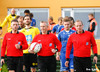 Liðin eru komin út á völl og því ekkert því til fyrirstöðu að leikurinn hefjist. Kristinn Jakobsson dómari er að kasta upp peningi með fyrirliðunum og svo hefst fjörið.