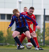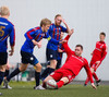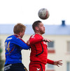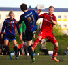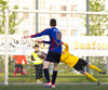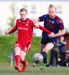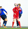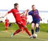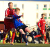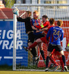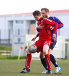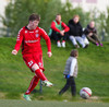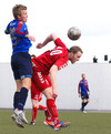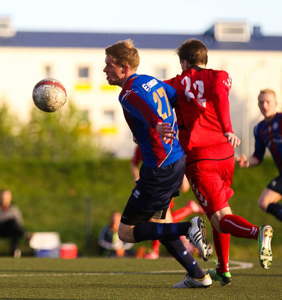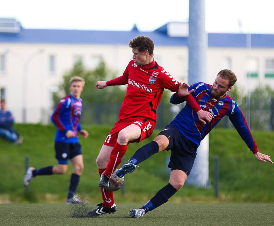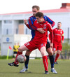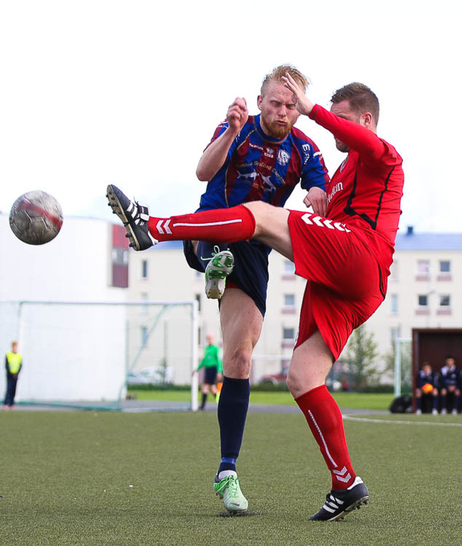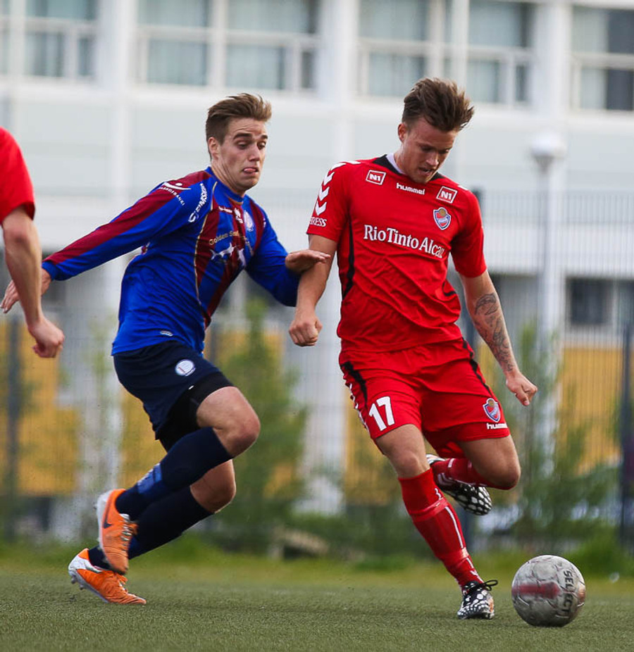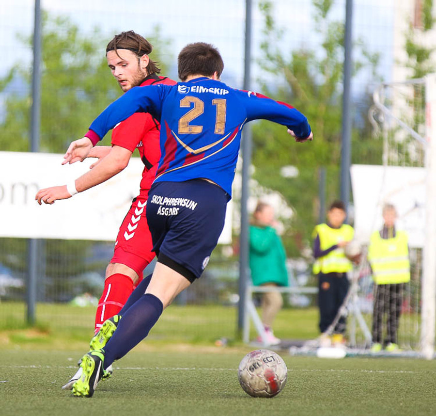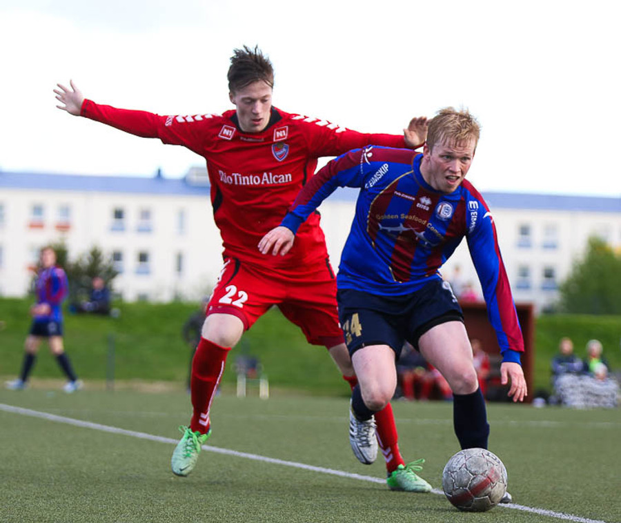 HÖRKUFÆRI! Leiknismenn voru að fá hörkufæri. Gestur Ingi með fyrirgjöf og Sævar Freyr skallaði en yfir markið.