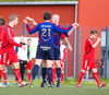 Hiti í leiknum og Gestur Ingi féll eftir baráttu við Hilmar Geir. Freyr Alexandersson þjálfari Leiknis var ekki sáttur og lét í sér heyra. Garðar dómari rak hann á bekkinn.