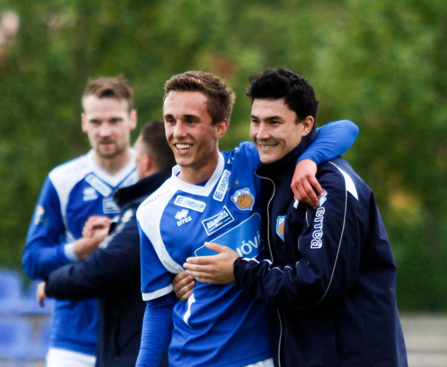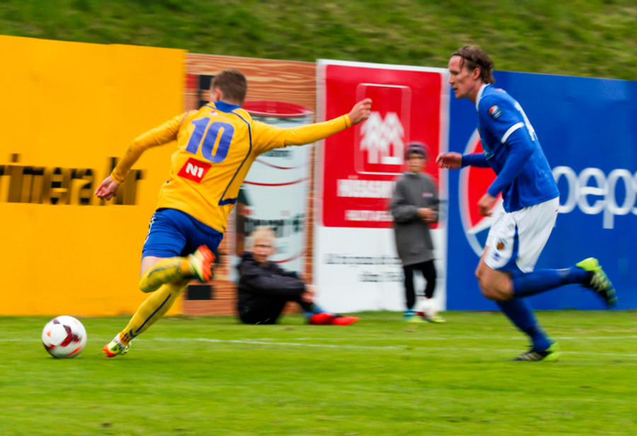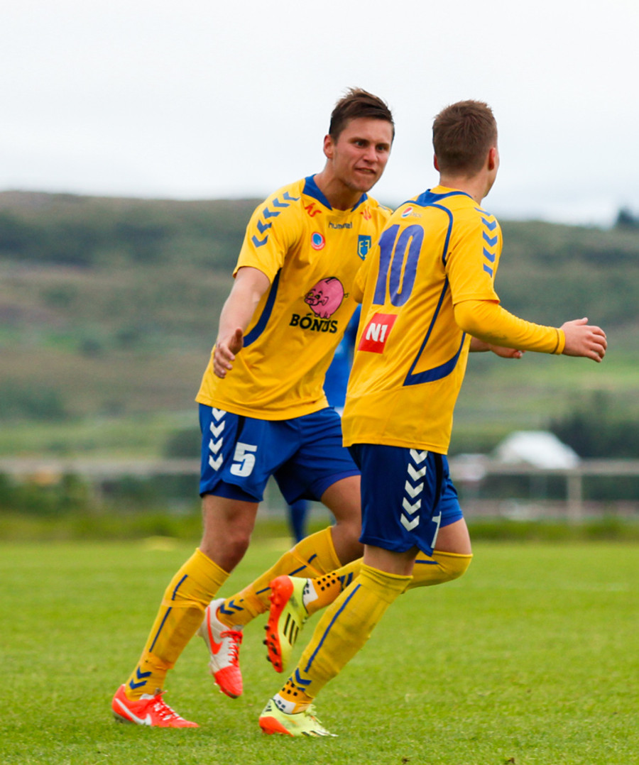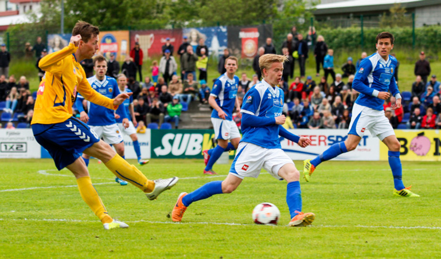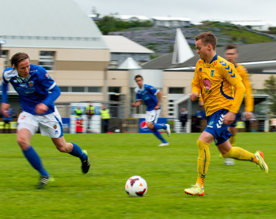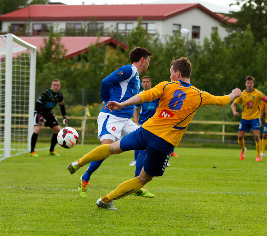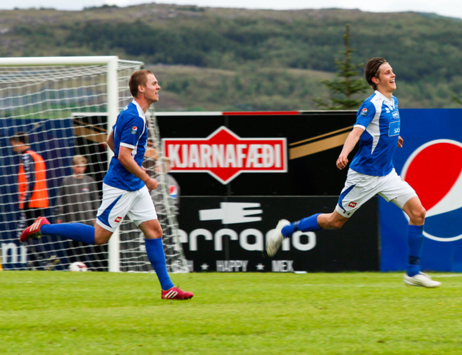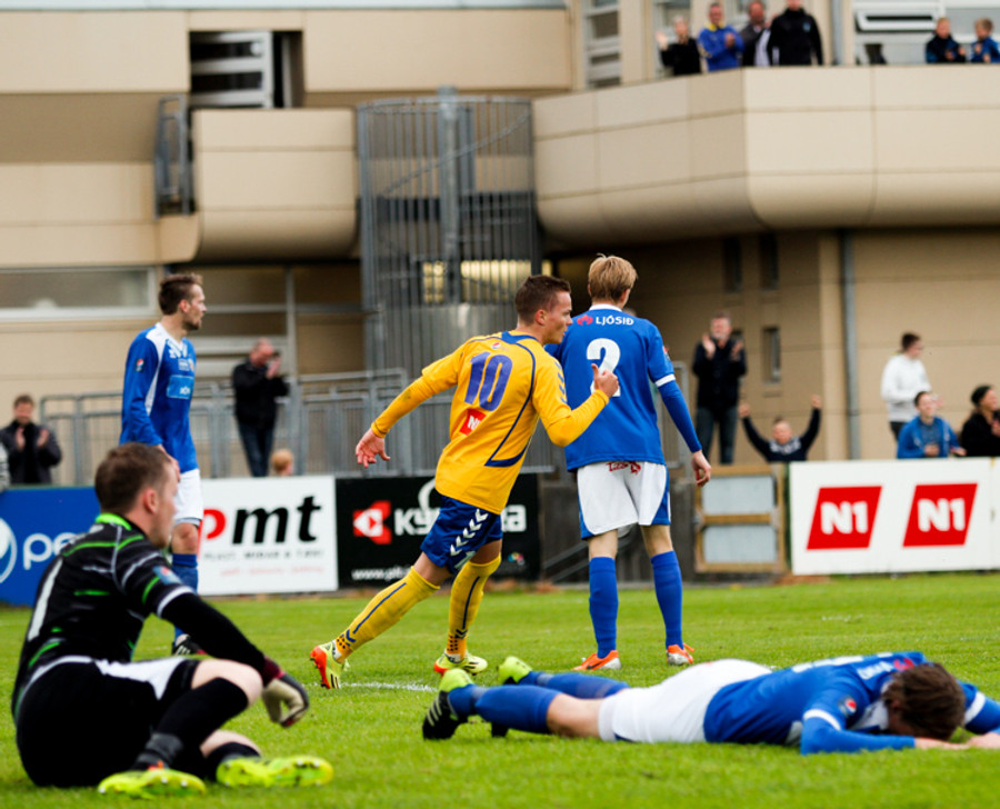 Þetta var mark af dýrari gerðinni. Haukur tók á rás í átt að marki, sneri snöggt og sendi út á Arnþór. Arnþór tók fast skot í fyrsta fyrir utan teig og boltinn söng í netinu.