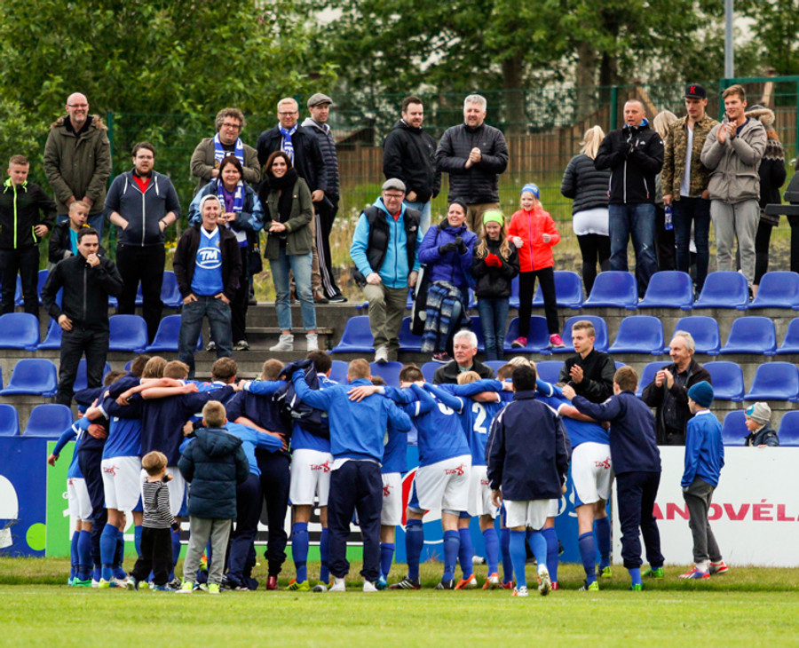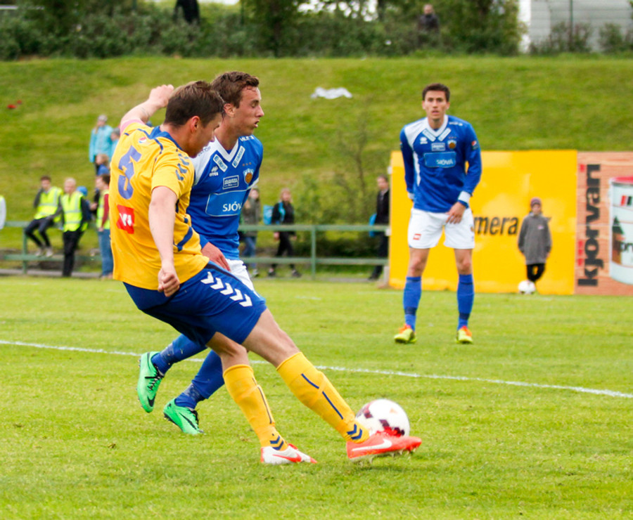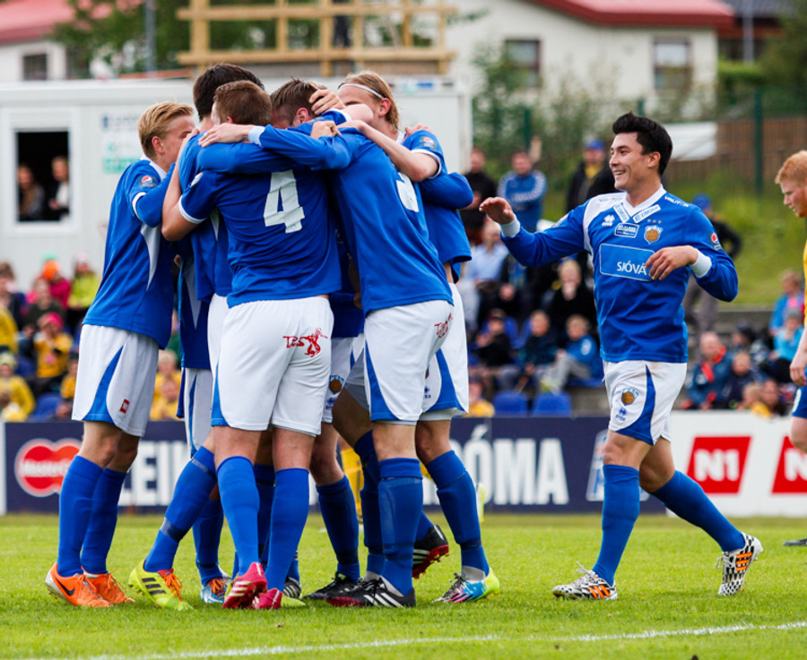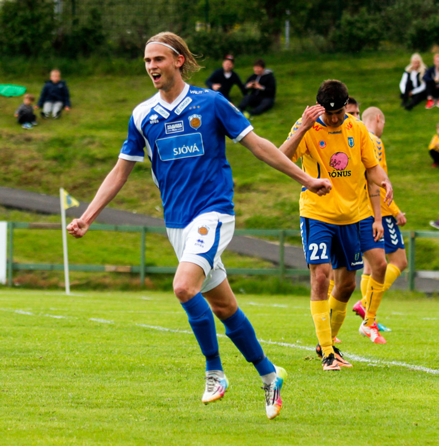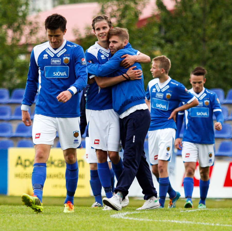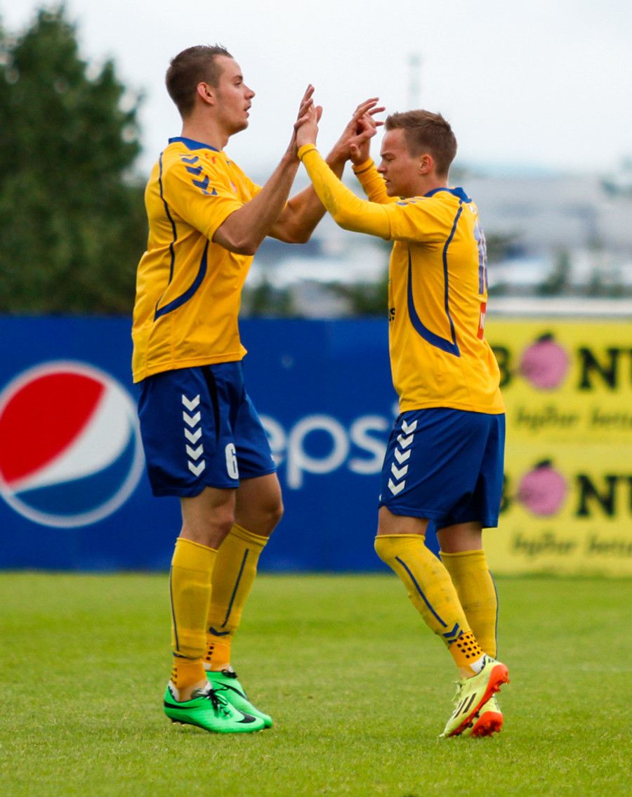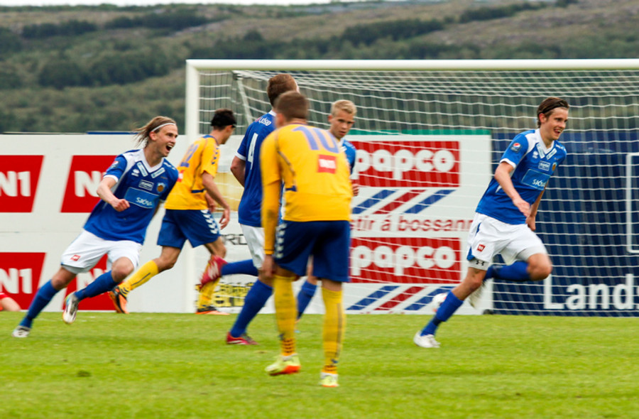Þetta var mark af dýrari gerðinni. Haukur tók á rás í átt að marki, sneri snöggt og sendi út á Arnþór. Arnþór tók fast skot í fyrsta fyrir utan teig og boltinn söng í netinu.