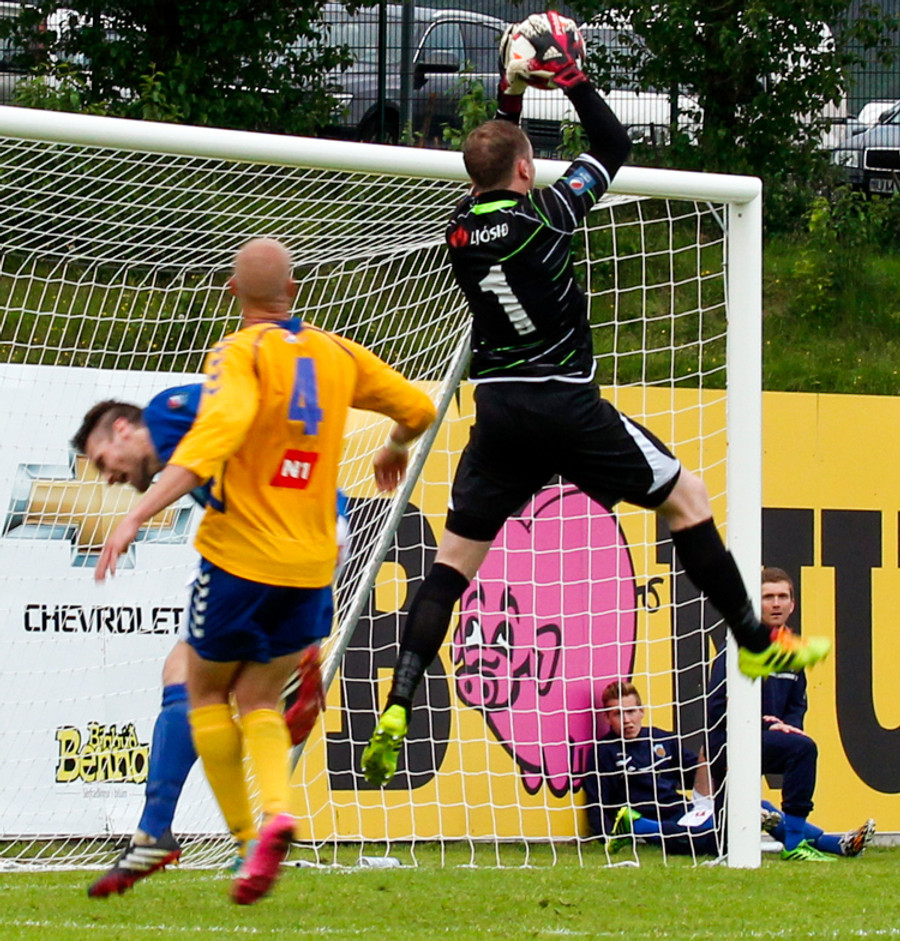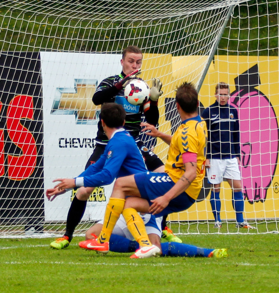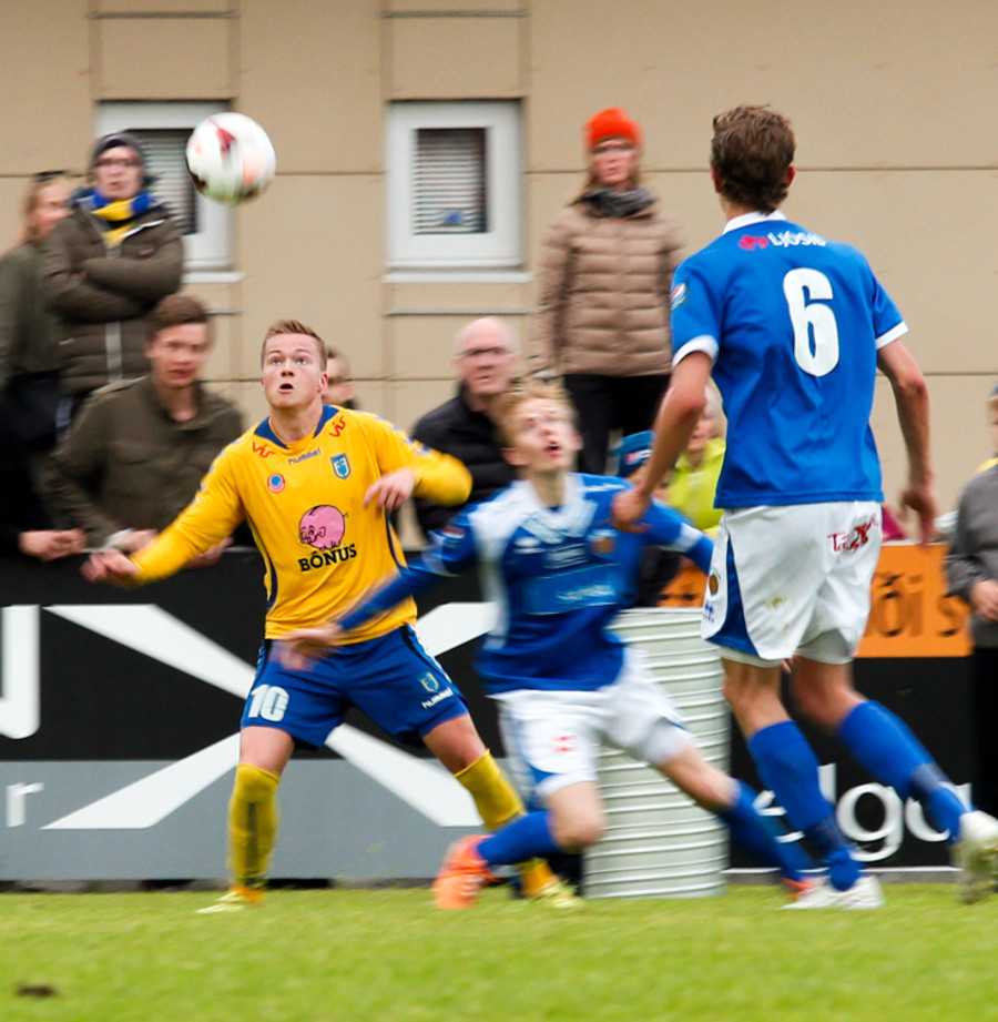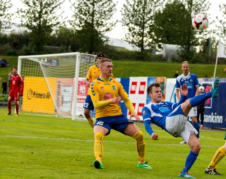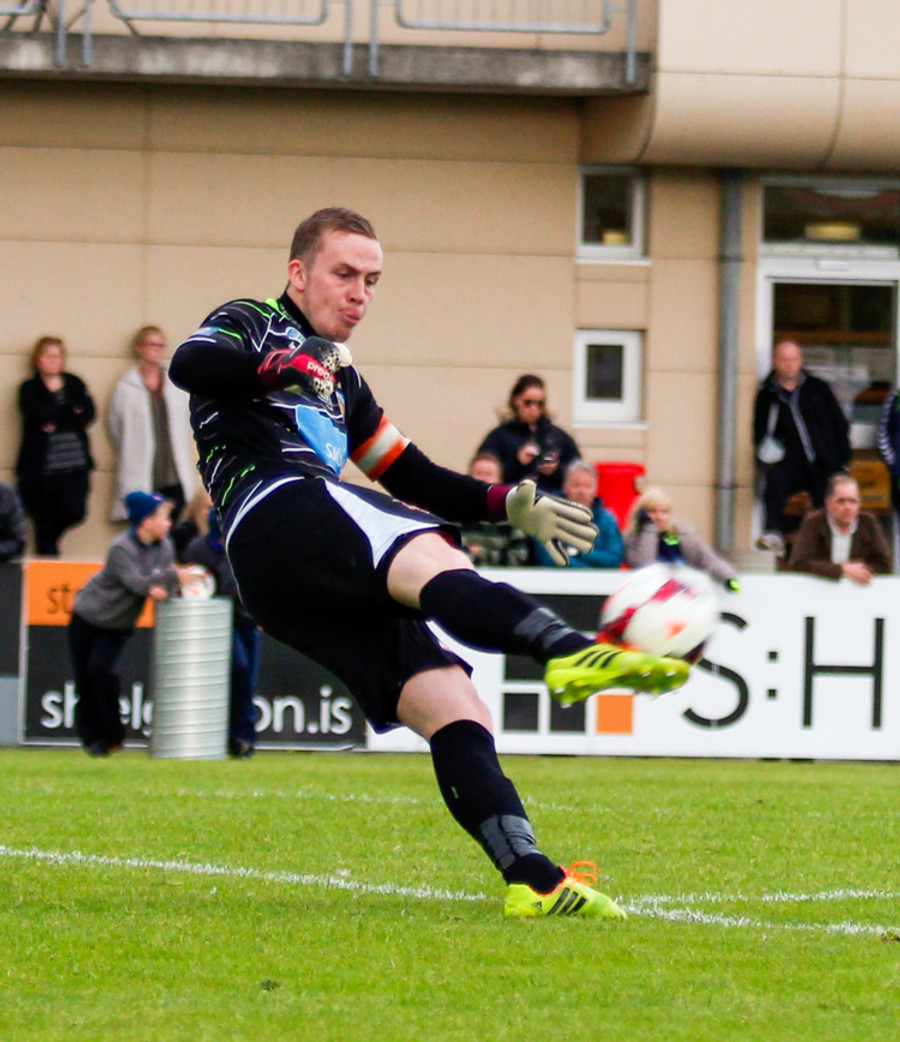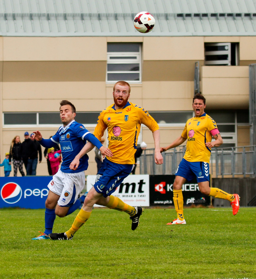 Varamaðurinn Atli Már tók langa aukaspyrnu frá eigin vallarhelmingi sem Ögmundur ætlaði út í. Boltinn var aðeins lengri en hann gerði ráð fyrir og fór nærrum því yfir hann og í netið. Ögmundur náði að bakka í tæka tíð og slá knöttinn í horn.