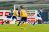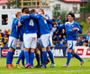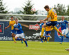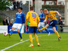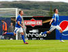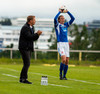 NÚ HLÝTUR AÐ KOMA SMÁ LÍF Í ÞENNAN LEIK. Aron Sig búinn að skora eftir tíu mínútur inn á vellinum. Guðmundur Karl fékk boltann niðri í hægra horninu og sendi fastan jarðarbolta fyrir markið. Þar mætti Aron á ferðinni og setti knöttinn í netið.