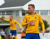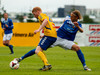 Fyrsta gula spjald leiksins. Fær það fyrir peysutog á miðjum vellinum.