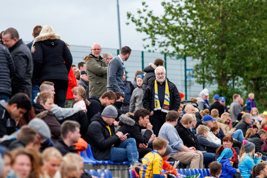 Liðin eru í óðaönn að hita upp úti á velli. Venju samkvæmt er nánast enginn áhorfandi mættur en ætli þeir birtist ekki þegar fimm mínútur eru liðnar af leiknum.