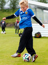 Ungir og upprennandi knattspyrnuiðkendur úr Fjölni leiða liðin inn á völlinn í dag.