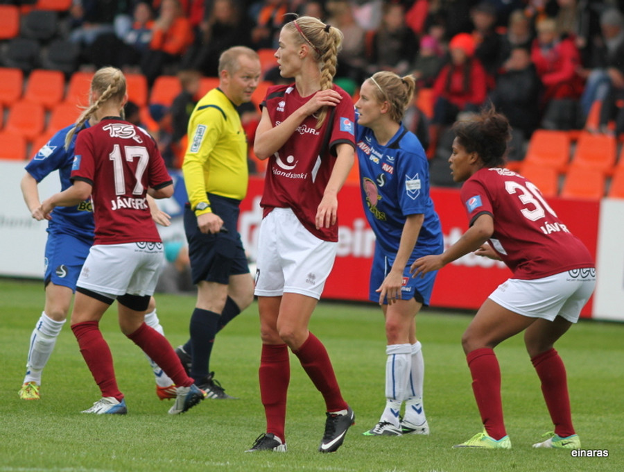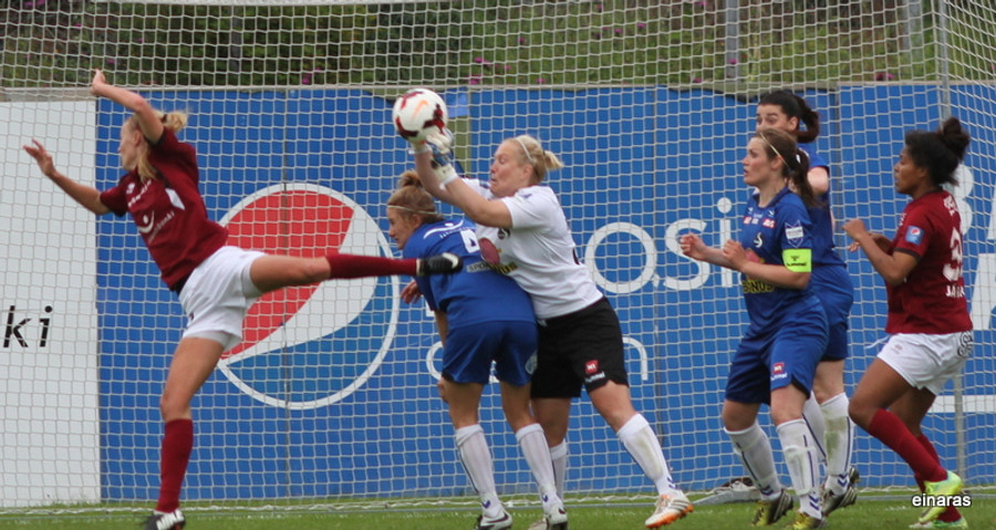 Enn og aftur er Boureille nálægt því að komast í boltann. Hún er stórhættuleg í þessum hornum, enda búin að skora tvö.