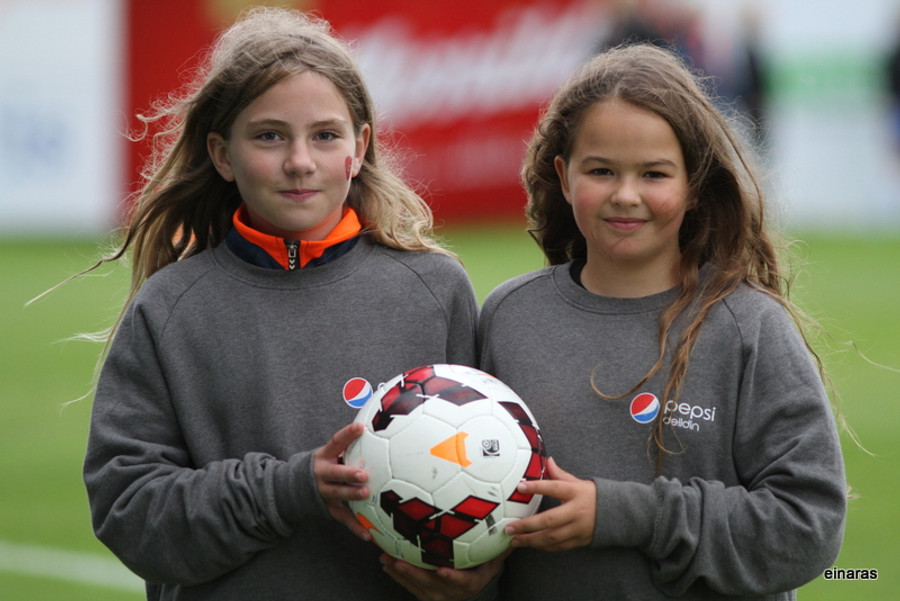 Katrín Ýr með glæsilega sendingu fyrir. Föst og þráðbein. Eva Lind var mætt á svæðið og fastur skallinn hennar fór framhjá.